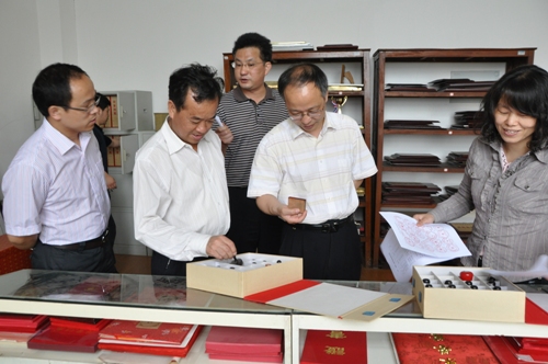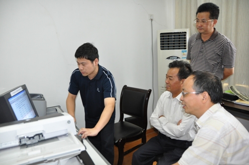 李水弟书记察看了档案馆工作环境,参观了档案馆库房。档案馆演示汇报了我校档案数字化工作的最新进展和成效以及我校档案网站建设情况。李水弟对学校档案工作给予了高度评价,特别是在迎接档案工作规范化管理省一级单位达标检查过程中,档案室全体工作人员加班加点,进一步规范学校各类档案给予了充分肯定。