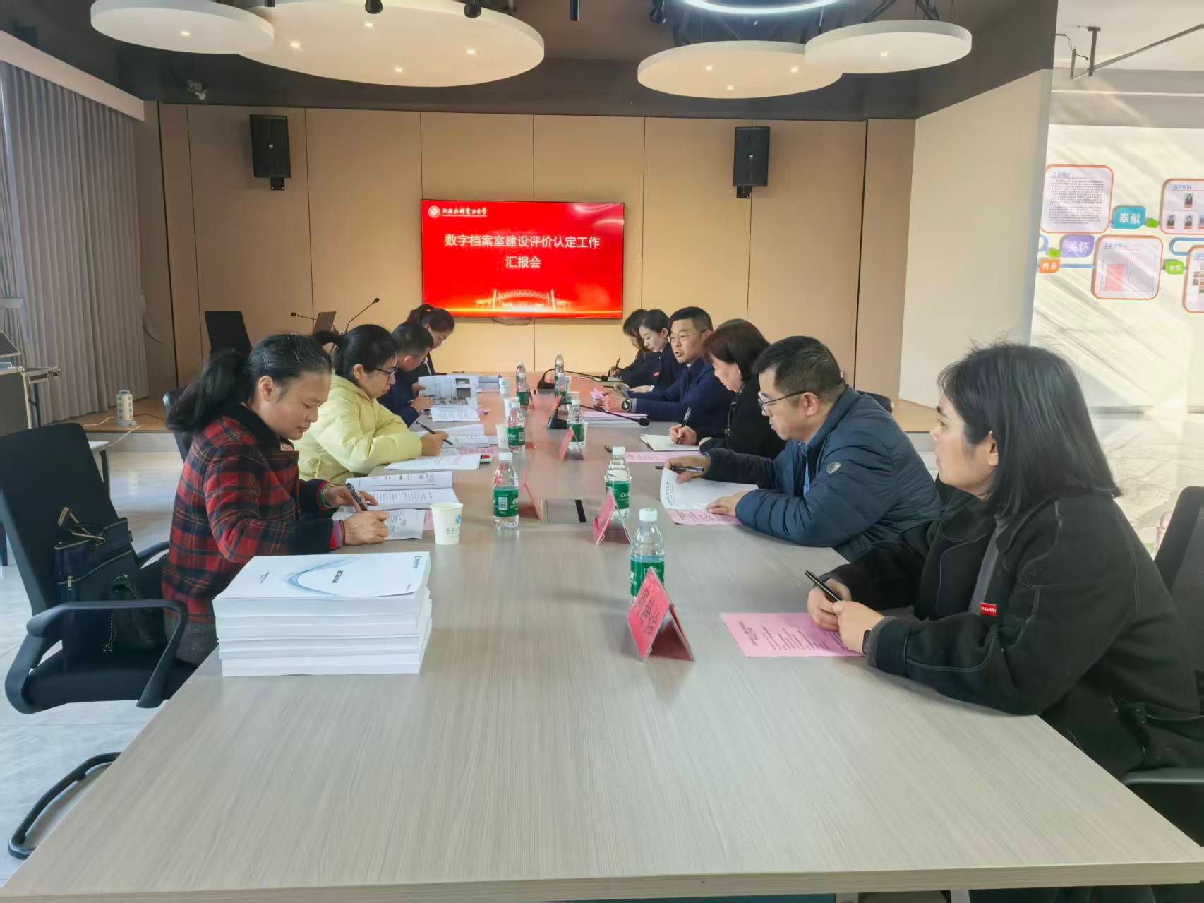 档案馆负责人和工作人员向专家组汇报了档案馆基本情况和我校数字档案馆建设的总体思路、实施路径、主要成果与特色成果。